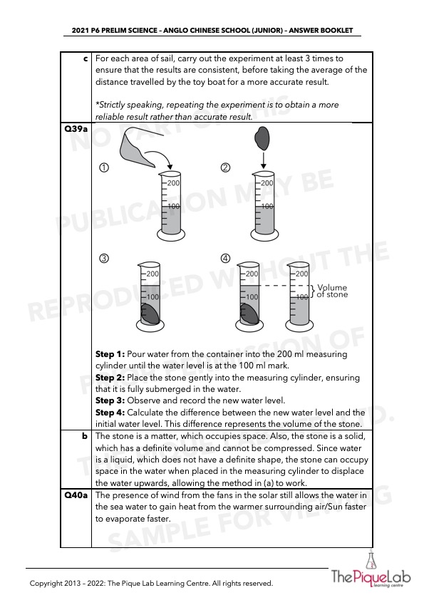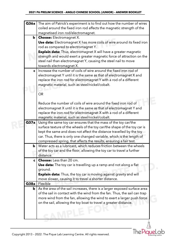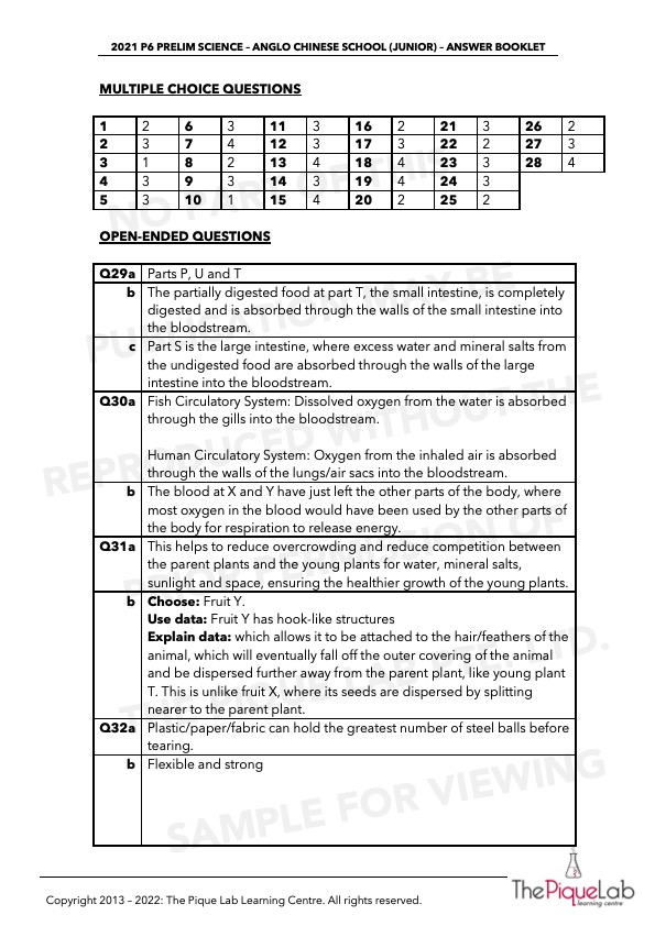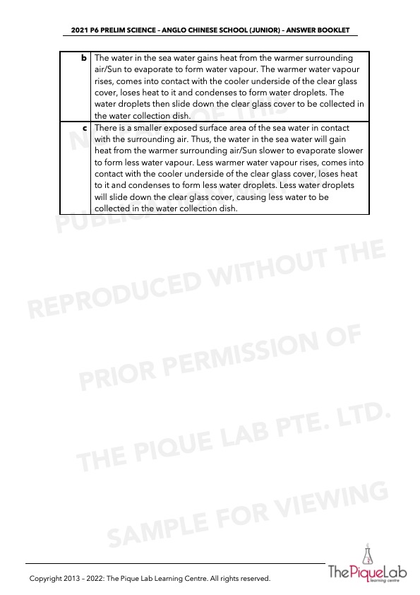The aforementioned answers should be treated only as a guide. The answers provided may not be entirely representative of the opinions of all primary school Science examination setters in Singapore. The Pique Lab will not be offering any refund/store credit under any circumstance.