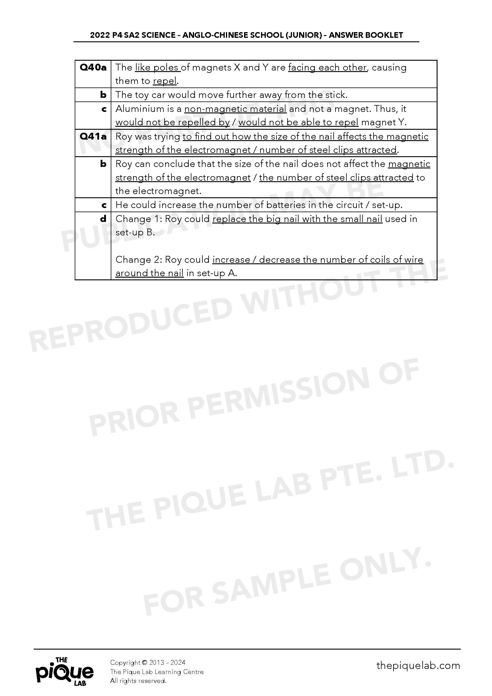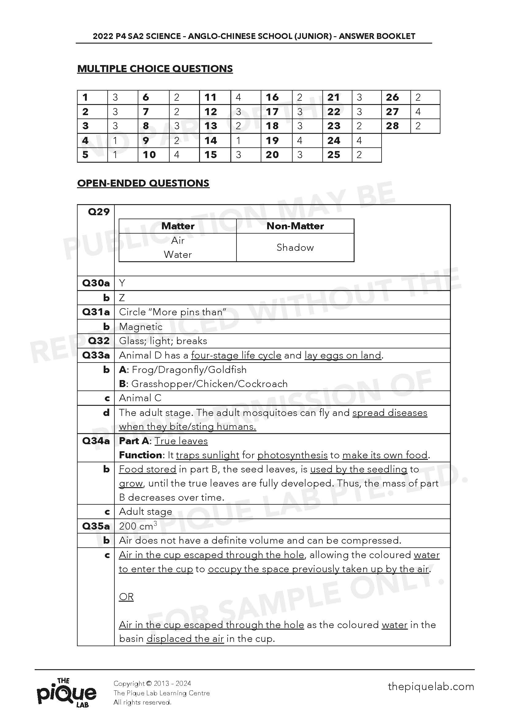 This 2022 P4 Science SA2 Answer Set contains suggested answers for the following 2022 P4 SA2 Science examination papers: