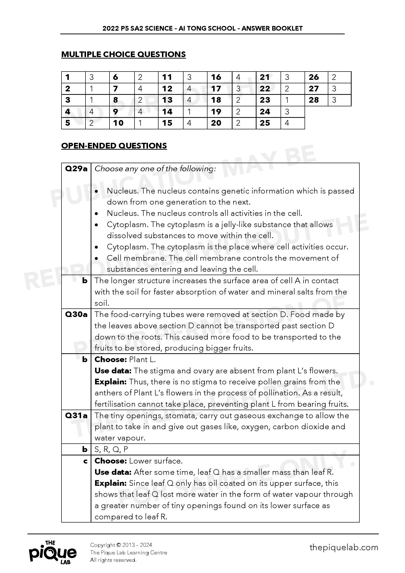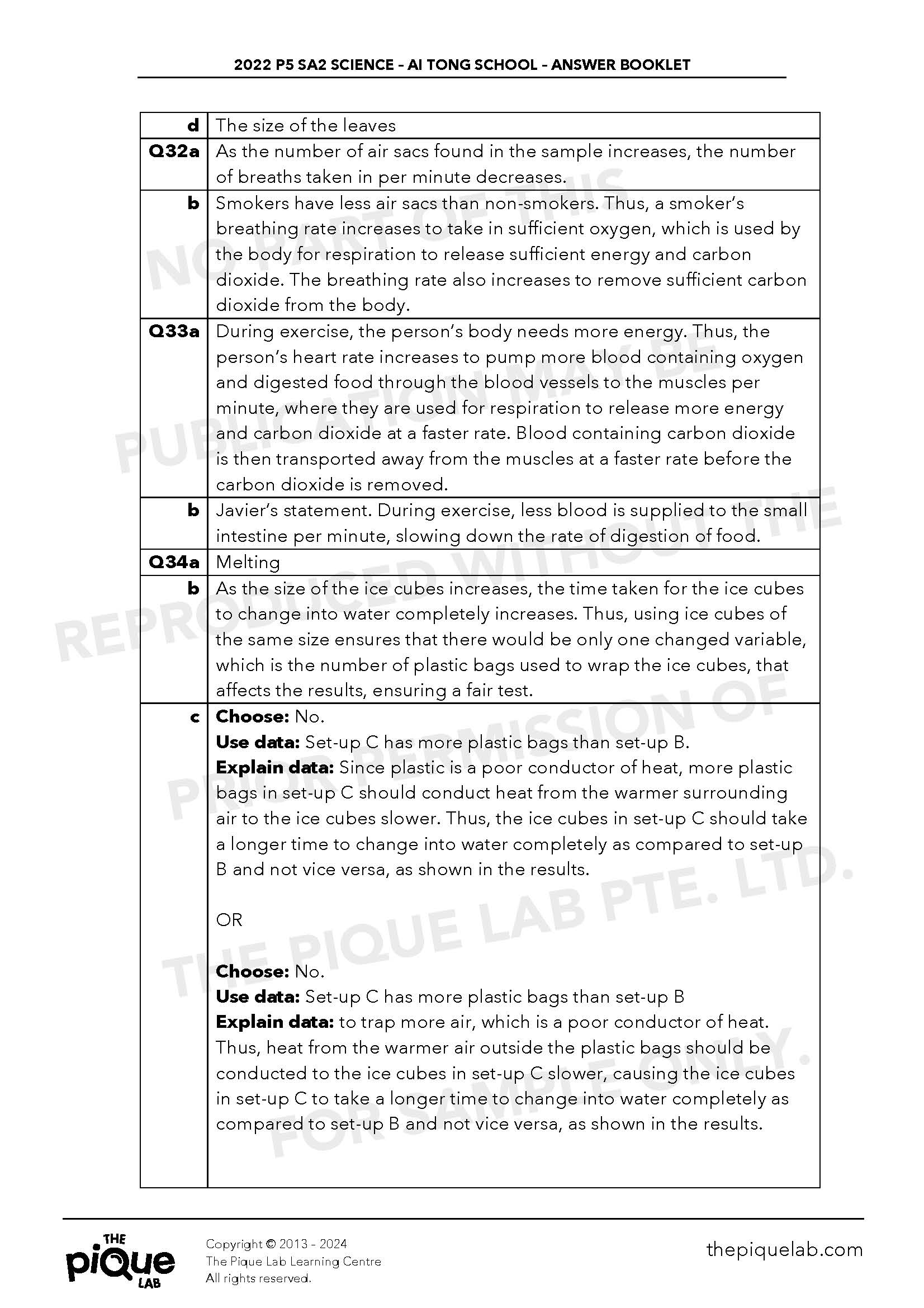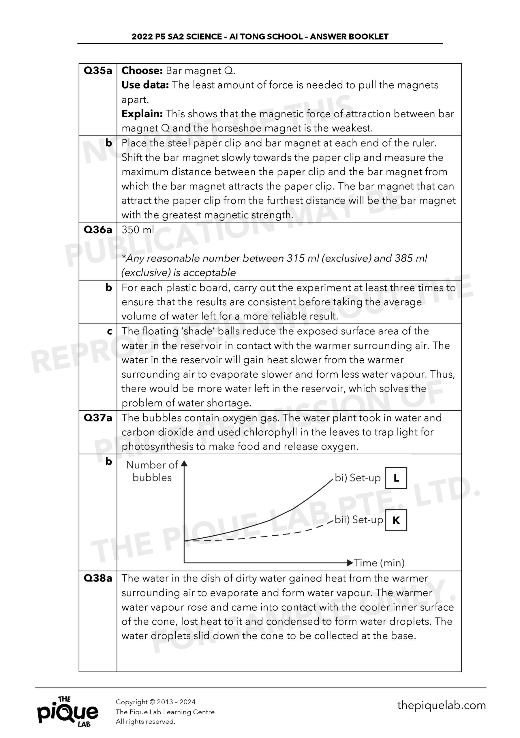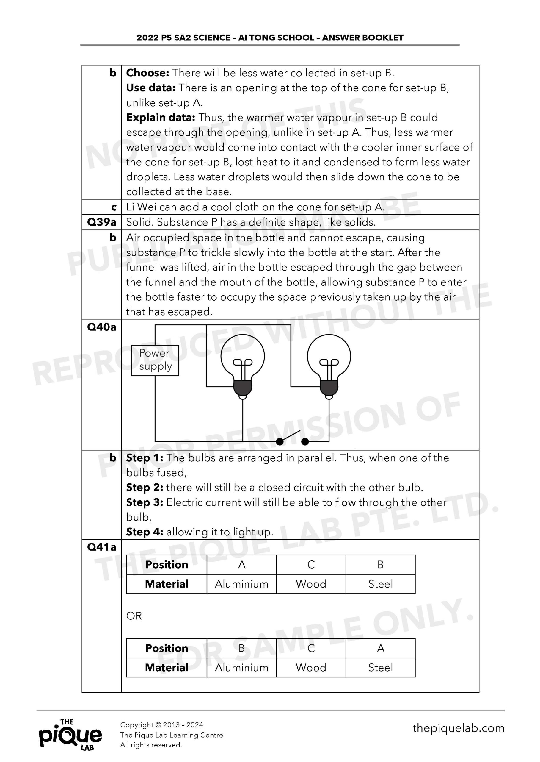The aforementioned answers should be treated only as a guide. The answers provided may not be entirely representative of the opinions of all primary school Science examination setters in Singapore. The Pique Lab will not be offering any refund/store credit under any circumstance.
