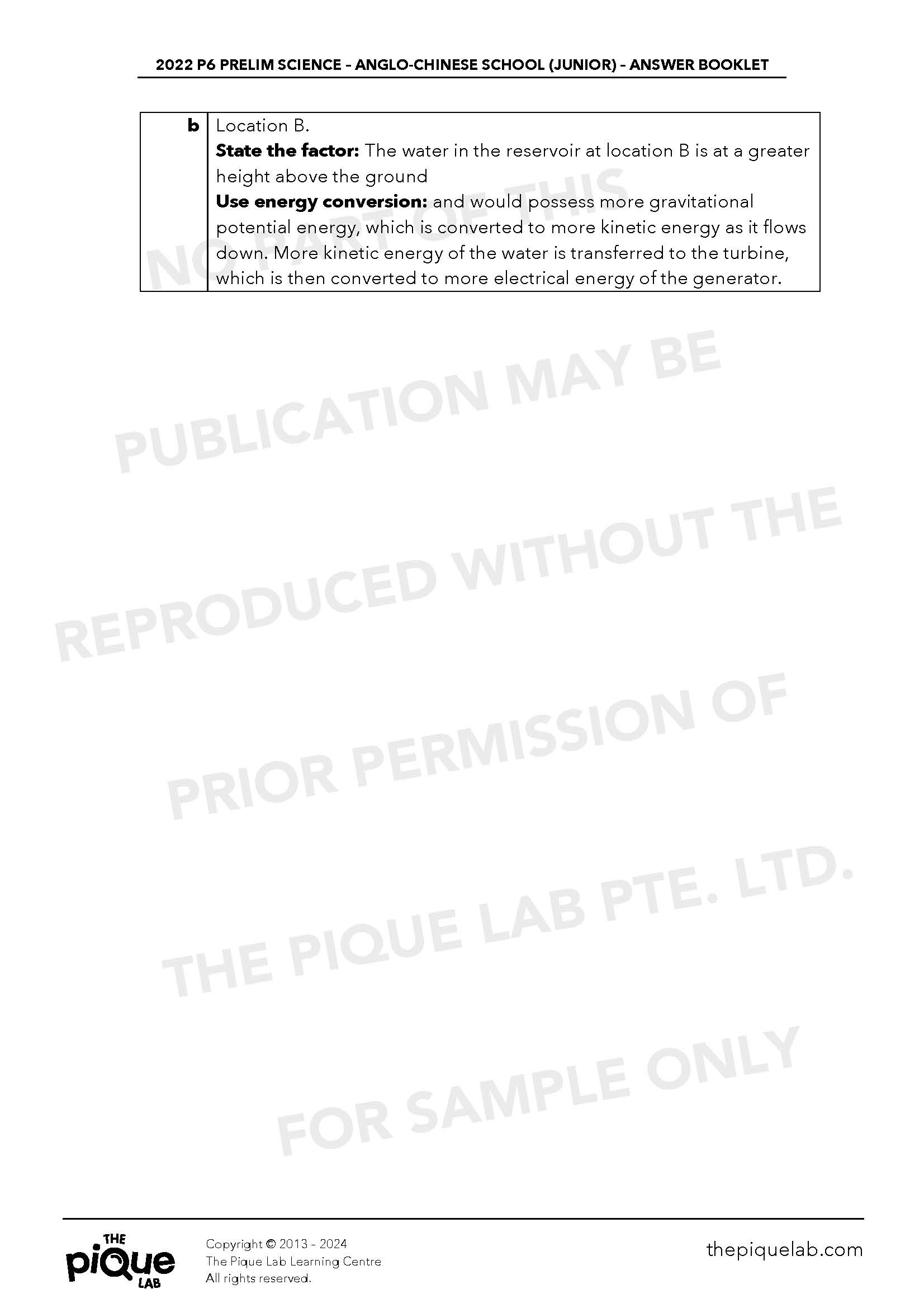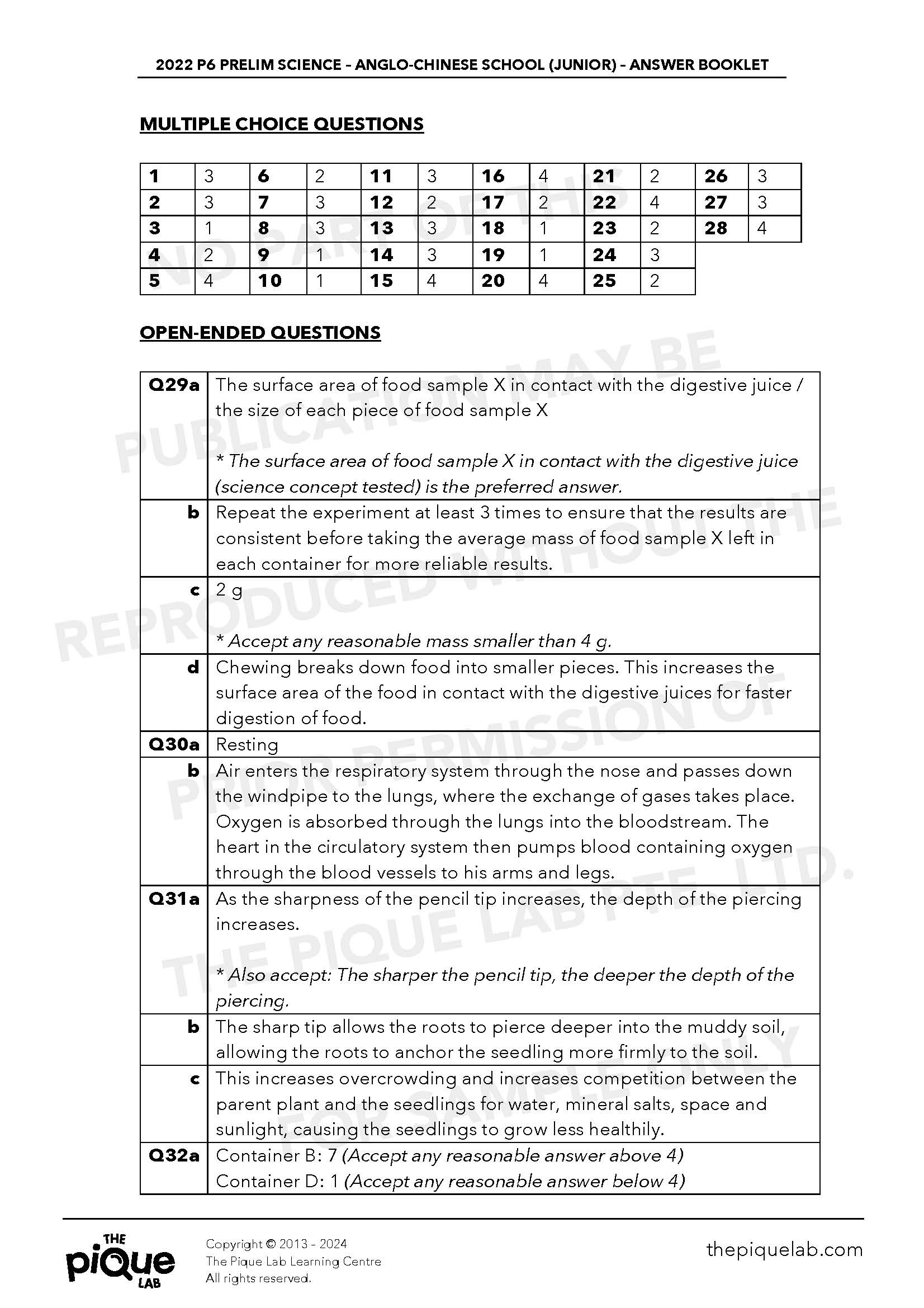 The aforementioned answers should be treated only as a guide. The answers provided may not be entirely representative of the opinions of all primary school Science examination setters in Singapore. The Pique Lab will not be offering any refund/store credit under any circumstance.