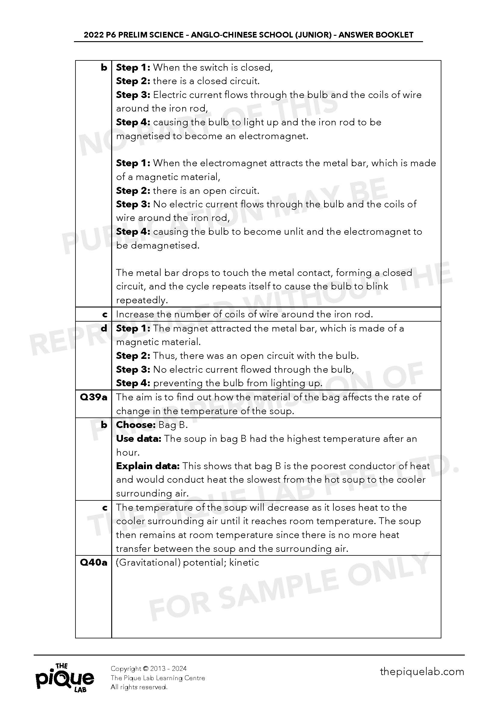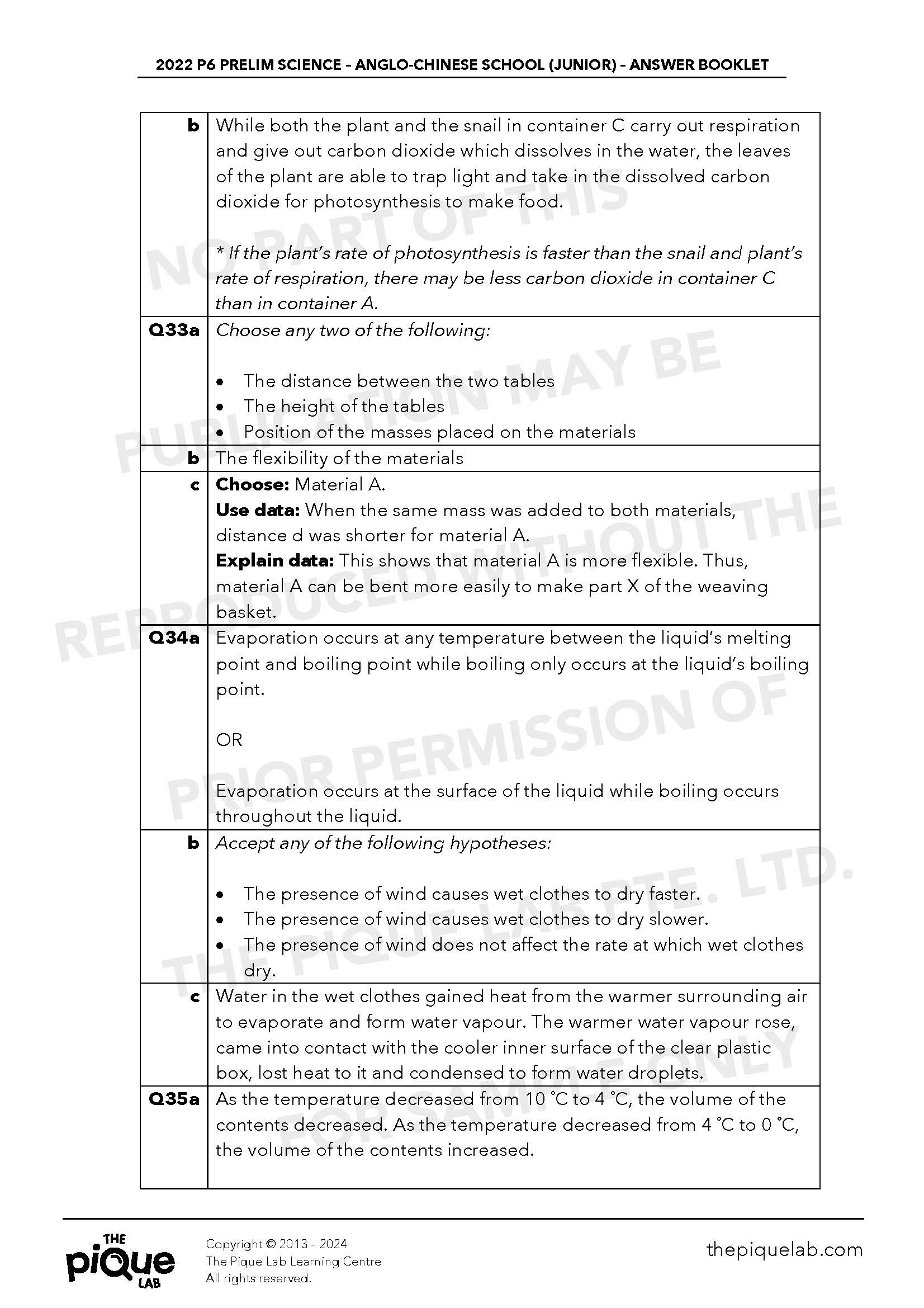 The aforementioned Science answers should be treated only as a guide. The answers provided may not be entirely representative of the opinions of all primary school Science examination setters in Singapore. The Pique Lab will not be offering any refund/store credit under any circumstance.